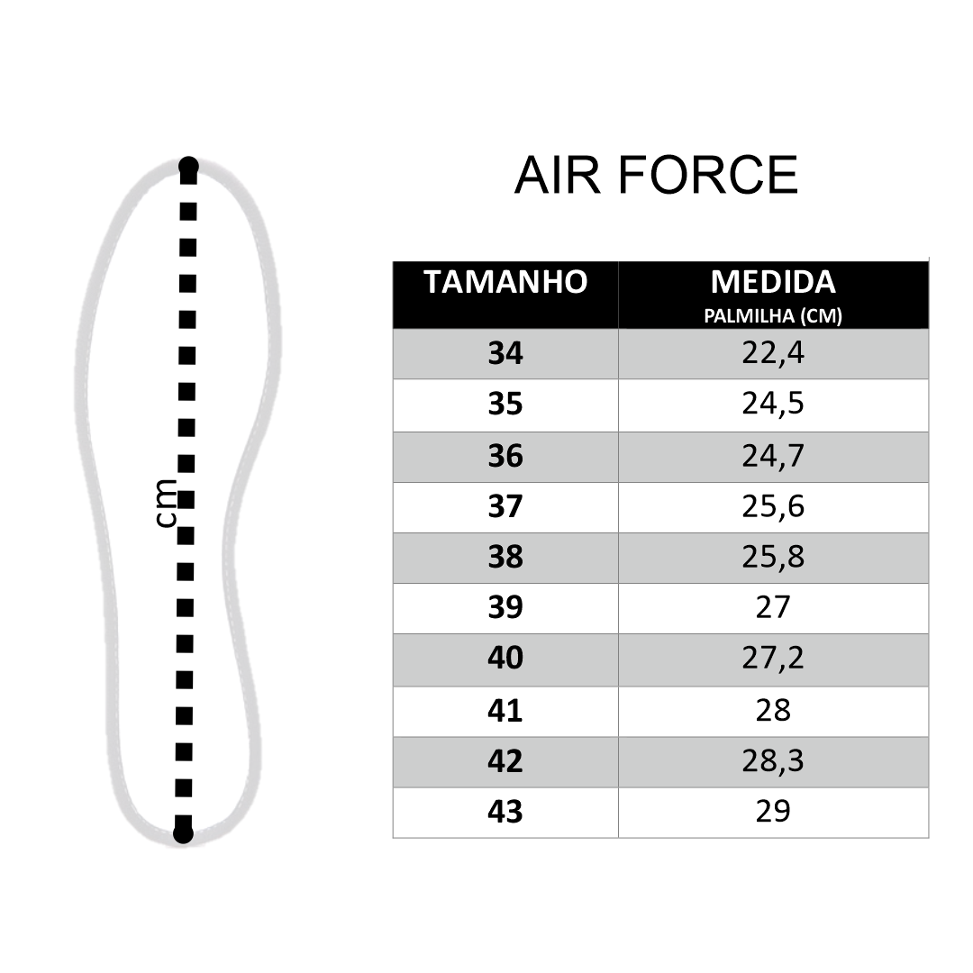 Muita atitude nesse clássico para os jovens, que sempre estão preparados para qualquer situação. Originalmente um calçado criado para a pratica de basquete, esse modelo se tornou um ícone da cultura Sneaker e, por isso, mantém o tradicional design que o consagrou. Nesta versão, o Tênis Nike Air Force 1 tem o cabedal feito em couro sintético com pequenas perfurações na área dos dedos para dar mais respirabilidade. Possui o colarinho cano médio acolchoado, com uma tira de velcro para auxiliar o fechamento, o que garante maior conforto e estabilidade. A entressola, por sua vez, conta com a tecnologia Nike Air, que garante mais conforto e amortecimento, graças à bolha de ar na altura do calcanhar. Enquanto o solado de borracha, oferece maior aderência em diversos tipos de superfícies, e assim maior segurança. Por fim, uma etiqueta metálica “AF-1” posicionada nos cadarços, na altura do peito do pé, dá um toque adicional de estilo à peça.